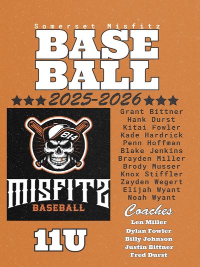 To the community and supporters, the future of Somerset Misfitz baseball is here! The team is excited to present the individuals who will represent the 11U team this season. We have 12 very talented boys from 3 different school districts ready to roll and make some noise. See you at the ballpark!